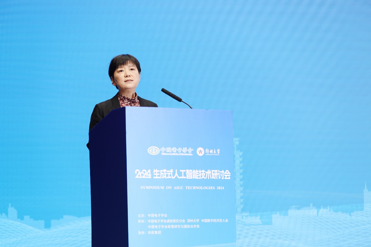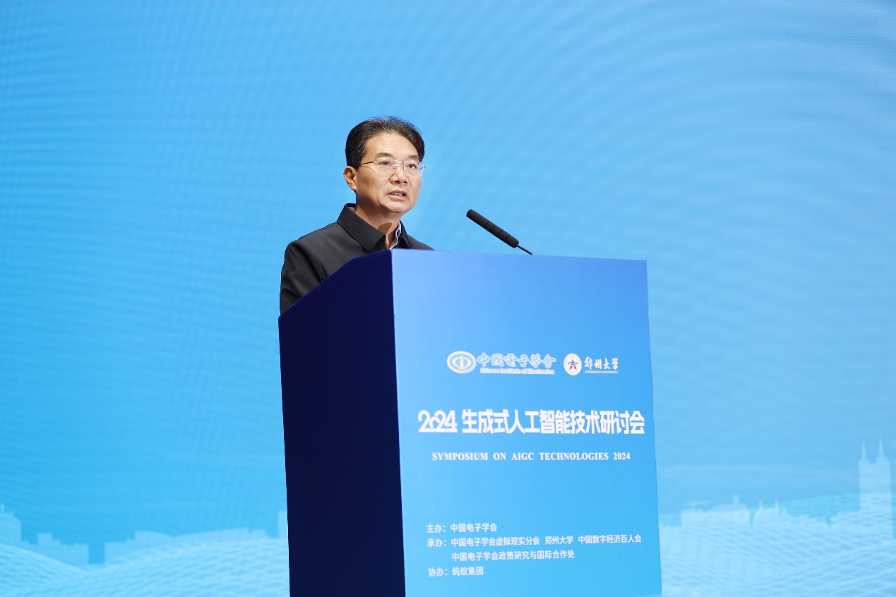 11月16日至17日,由中国电子学会主办,中国电子学会虚拟现实分会、ac米兰官网中文网站、中国电子学会政策研究与国际合作中心、中国数字经济百人会共同承办,蚂蚁集团协办的2024生成式人工智能技术研讨会在郑州举行。中国电子学会王天虹副秘书长、河南省工业和信息化厅副厅长李翔、河南省科学技术厅副厅长陶曼希、ac米兰官网中文网站副校长刘春太出席研讨会并致辞。本次研讨会邀请了包括中国工程院院士、同济大学原副校长蒋昌俊,国家杰青、湖南大学副校长李肯立,长江特聘、复旦大学副校长姜育刚等在内的30余位两院院士、杰青、长江等知名学者和工业界技术专家进行系列精彩报告和观点分享,浙江大学周昆教授和ac米兰官网中文网站徐明亮教授担任大会主席。会议由ac米兰官网中文网站科学技术研究院主要负责同志主持。