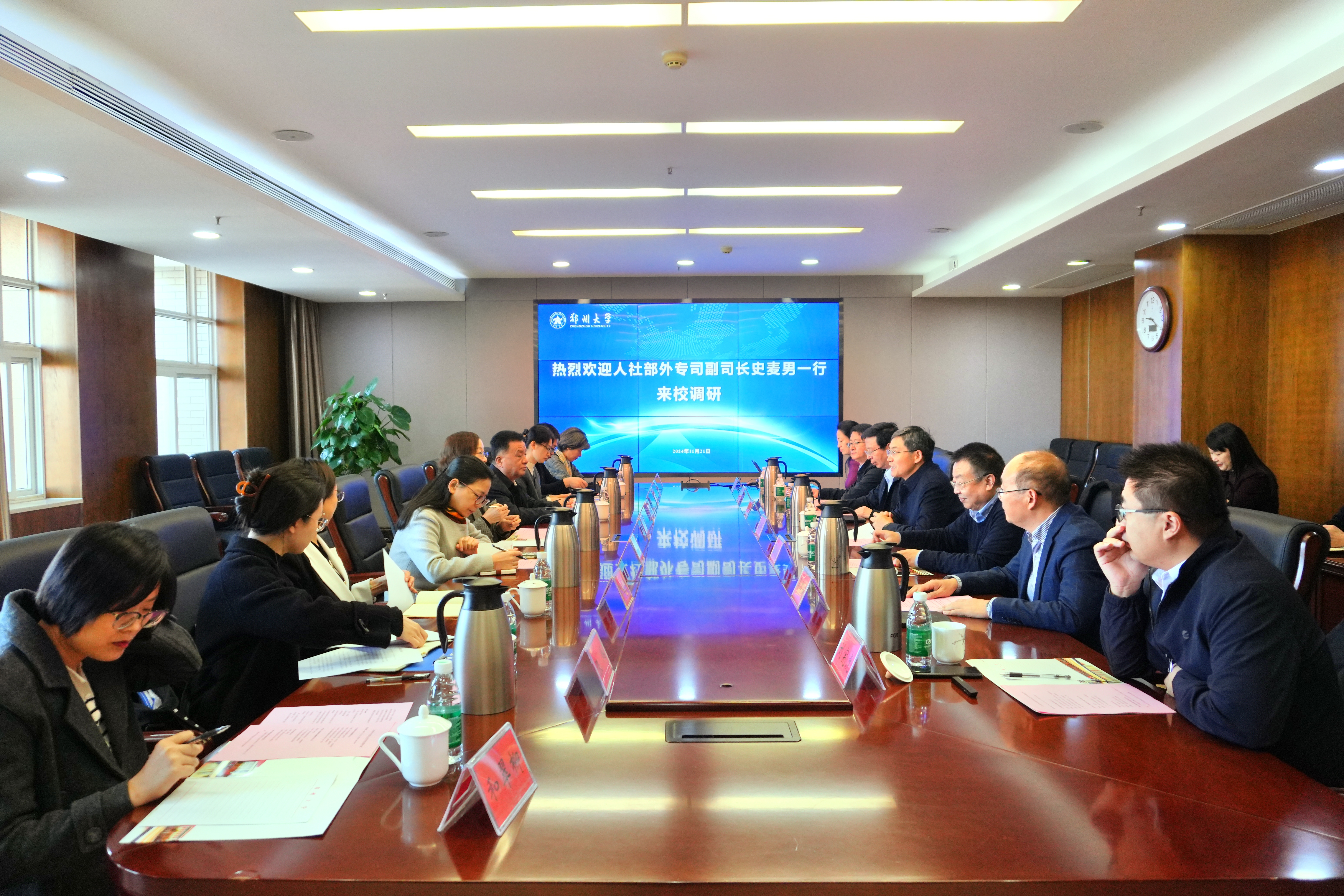 王海杰对史麦男一行的到访表示欢迎,对人社部和省人社厅长期以来对学校的大力支持表示感谢。他表示,学校高度重视国际合作交流工作,持续探索国际化办学新模式,不断提升国际化办学的整体水平。他指出,学校坚持“走出去”和“请进来”有机融合,不断拓宽海外人才引进渠道,建设有1个国家引才引智示范基地和3个学科创新引智基地。通过引进、汇聚、培养具有国际领先水平的学术带头人以及具有创新能力的优秀学术骨干,开展高水平合作研究、高层次人才培养和高质量学术交流,有效带动了相关学科实力跃升,对一流大学建设起到了重要的助推作用。他希望人社部和省人社厅对学校引进高水平外国专家工作给予更多的指导和更大的支持。