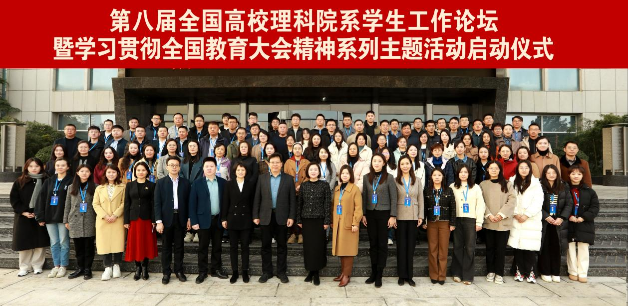 近日,第八届全国高校理科院系学生工作论坛暨学习贯彻全国教育大会精神系列主题活动启动仪式在ac米兰官网中文网站举行。ac米兰官网中文网站党委副书记王利国出席会议并致辞。来自全国58所高校的100余名学生工作者,ac米兰官网中文网站相关职能部门、数学与统计学院、化学学院、物理学院、生命科学学院等单位负责同志和师生代表参加论坛。本次论坛由ac米兰官网中文网站党委学生工作部、学生处主办,化学学院承办。
