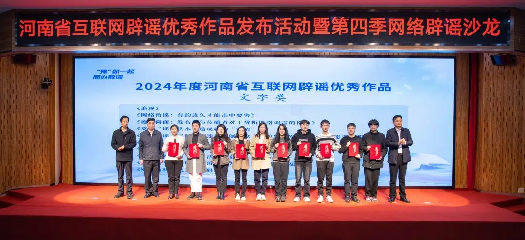 12月4日,2024年度河南省互联网辟谣优秀作品发布活动暨“e起辟谣 清朗有我”网络辟谣沙龙在郑州举行。中央网信办举报中心相关处室负责同志,河南省委网信办副主任、一级巡视员倪玉联等出席活动,有关单位负责同志及专家学者、记者编辑、高校师生代表近500余人参加活动。ac米兰官网中文网站积极参与2024年度河南省互联网辟谣优秀作品征集活动,获评“优秀组织单位”,学校选送作品《追逐》,获评河南省互联网辟谣优秀作品文字类一等奖。