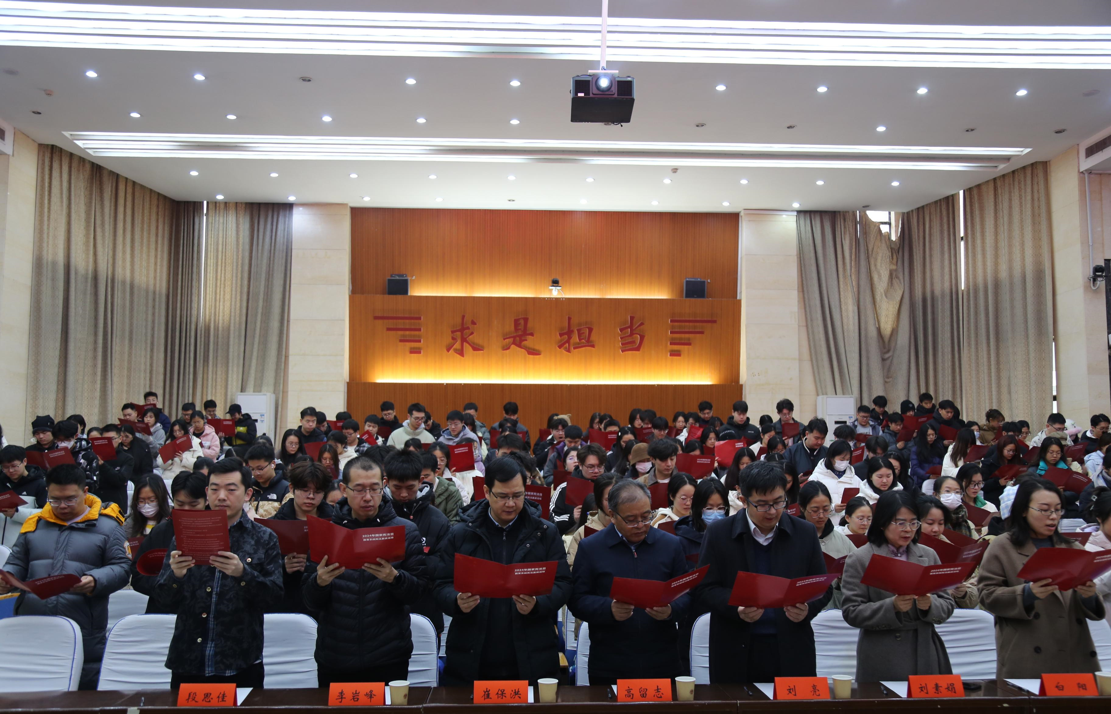 12月4日上午,学校在法学院模拟法庭举行国家宪法日“宪法晨读”主题活动。百余名师生通过视频连线与北京主会场齐声诵读宪法条文,整齐而有力的诵读声,彰显出宪法的神圣庄严。活动期间,参与人员还一同观看了2024年全国学生“学宪法 讲宪法”活动优秀选手直播展演。