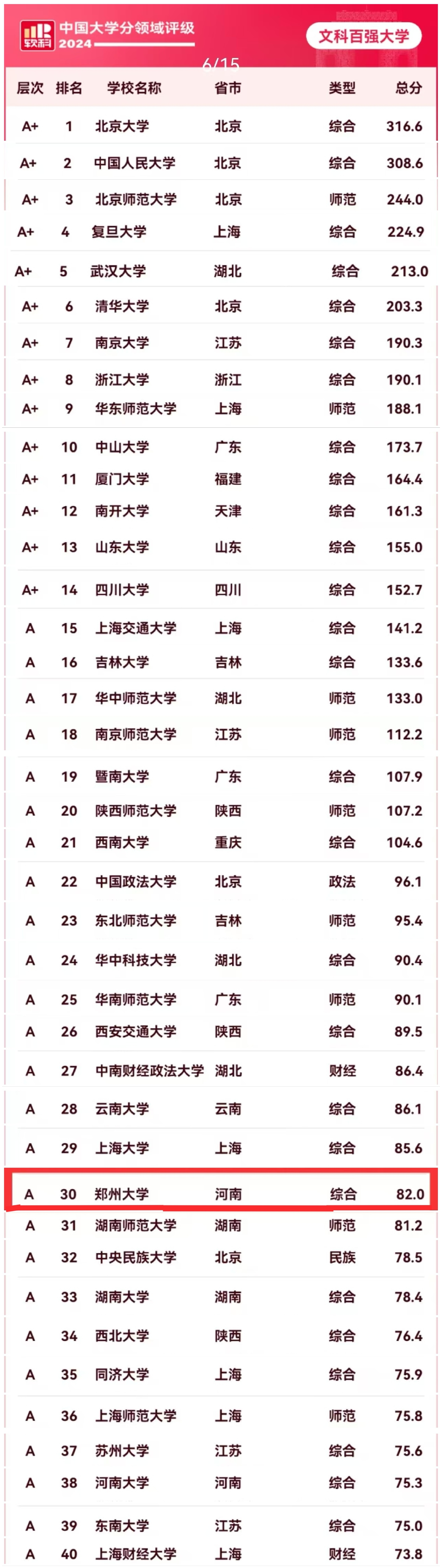 12月24日,高等教育评价专业机构软科正式发布“2024中国大学文科实力评级”。今年,北京大学、中国人民大学和北京师范大学再度蝉联文科实力前三甲。ac米兰官网中文网站入选中国文科实力A类大学,位列全国第30名。
