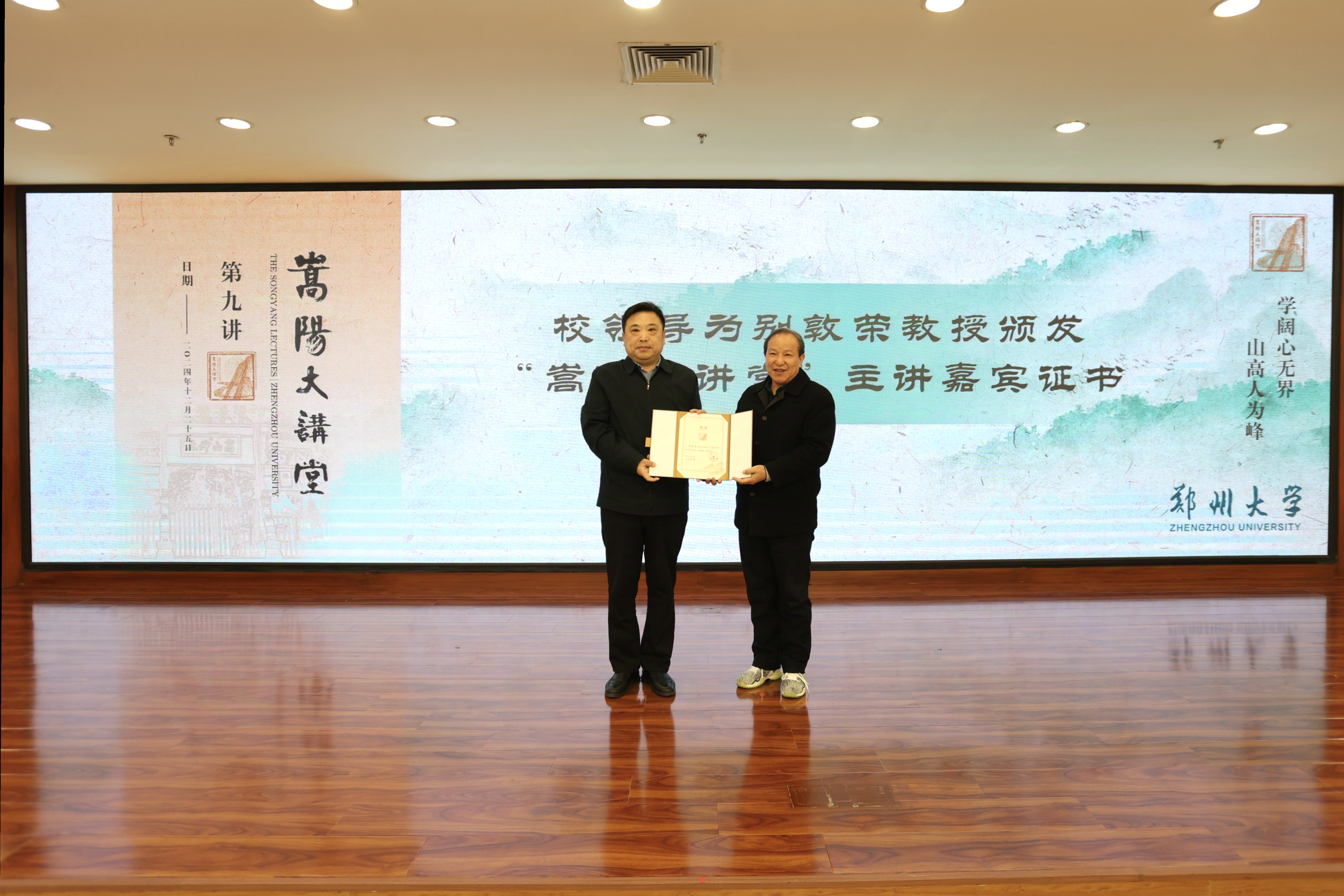 胡少伟为别敦荣颁发“嵩阳大讲堂”主讲嘉宾证书