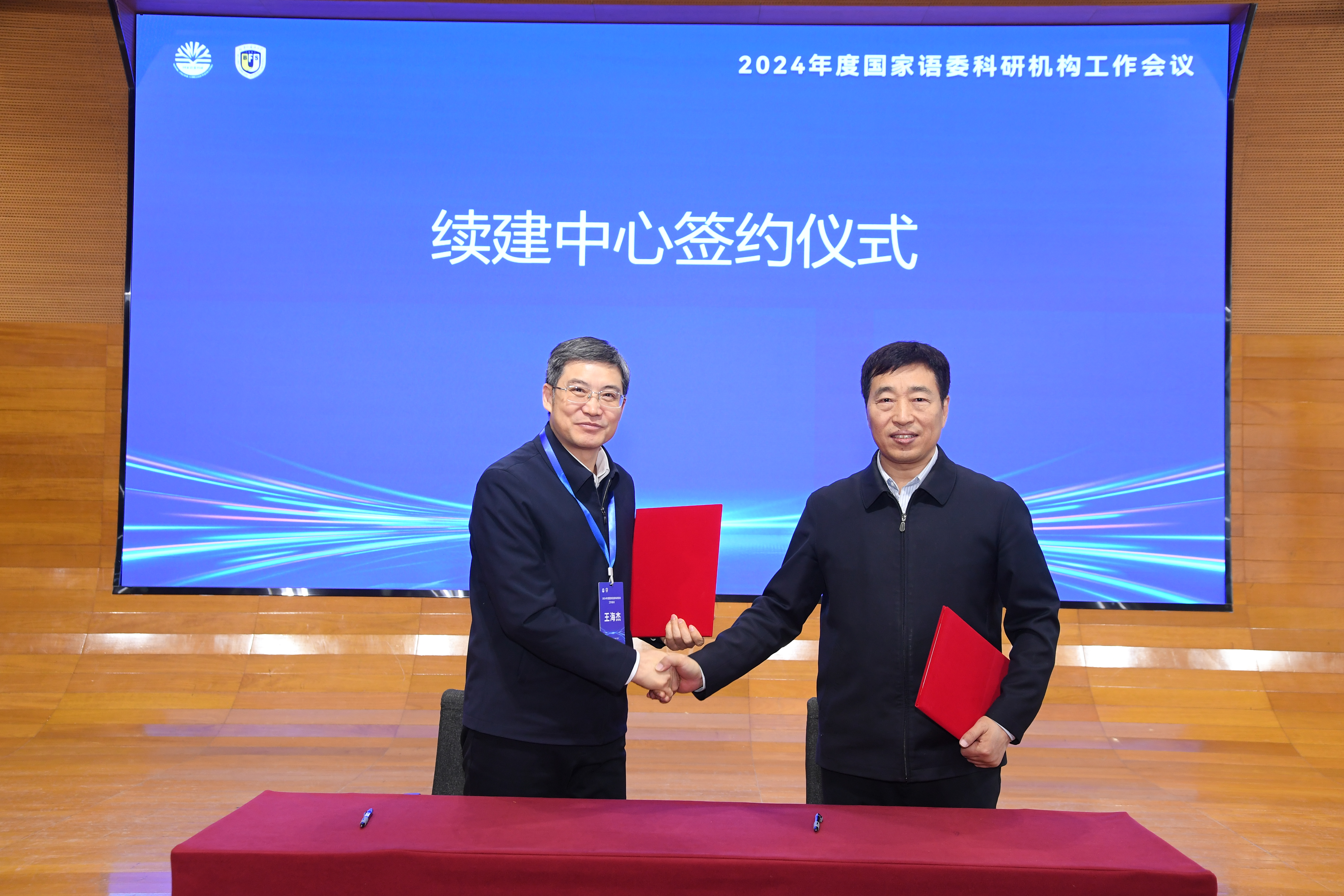 近日,2024年度国家语委科研机构工作会议在北京举行,会上教育部语言文字信息管理司与ac米兰官网中文网站举办了续建国家语委科研基地“中华汉字文明研究中心”(原名“汉字文明传承传播与教育研究中心”)的签约仪式。教育部语言文字信息管理司司长刘培俊,校党委常委、副校长王海杰代表共建双方签约,中华汉字文明研究中心相关负责人等参加签约仪式。