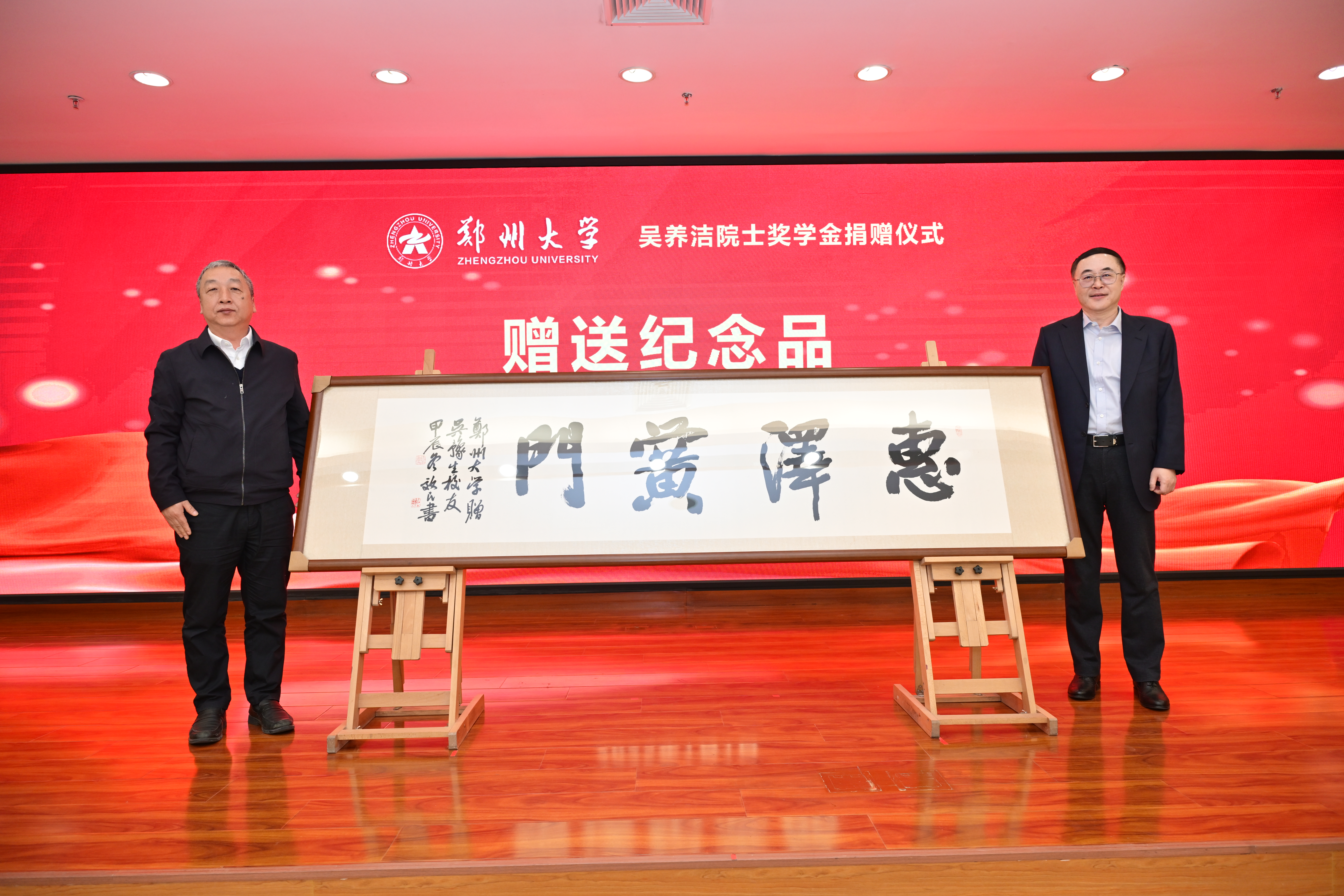 仪式上,胡少伟代表学校与吴豫生签订了捐赠协议书,刘春太代表学校向吴豫生赠送纪念品,臧双全代表学校接受奖学金捐赠500万元,并为吴豫生颁发捐赠证书。
