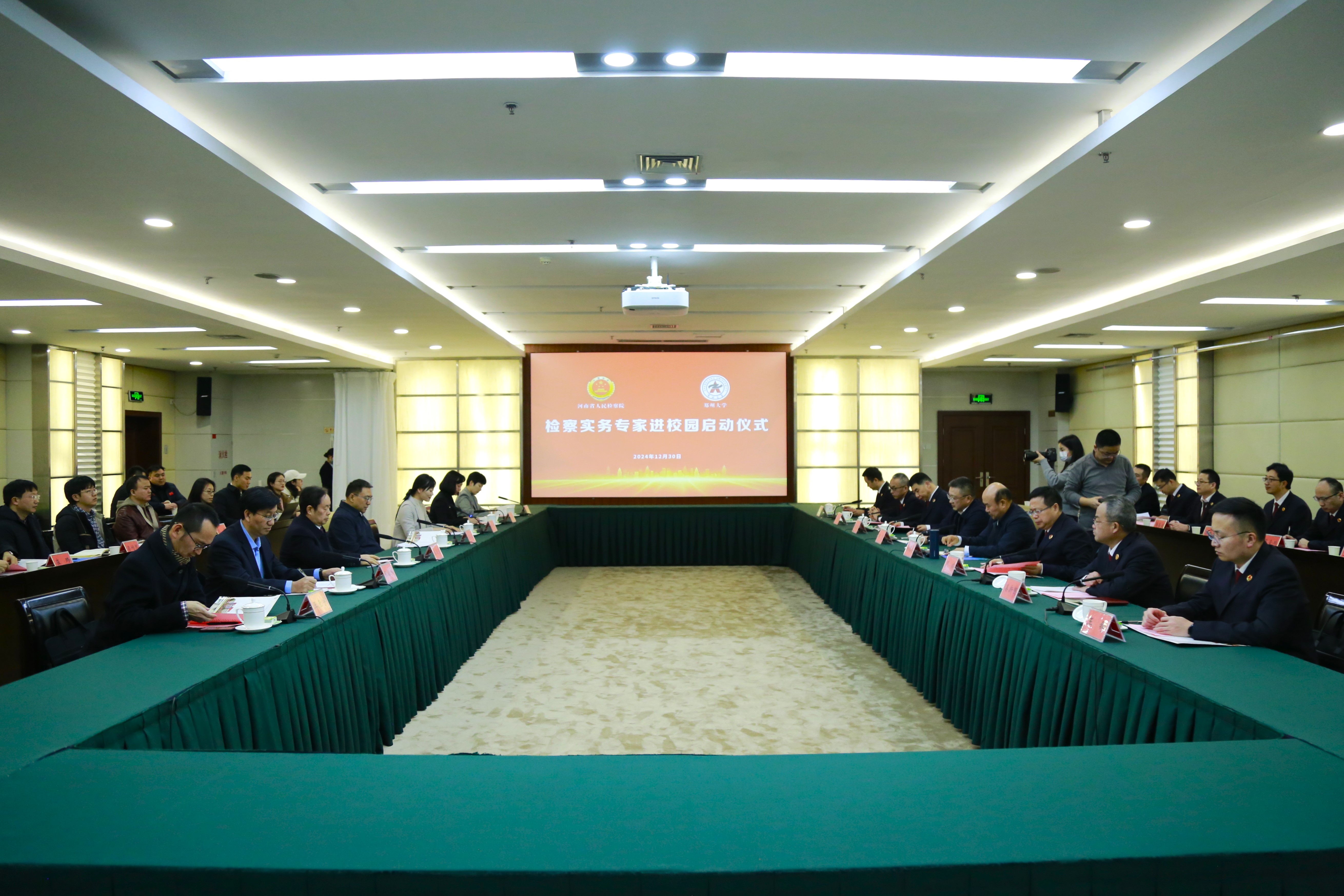 近日,河南省人民检察院“检察实务专家进校园”启动仪式在ac米兰官网中文网站举行。河南省人民检察院党组副书记、副检察长田凯,校党委书记别荣海出席并致辞。河南省人民检察院党组成员、政治部主任姚福安,河南检察职业学院党委书记张进超参加启动仪式。校党委常委、纪委书记、监察专员陈曦主持启动仪式。