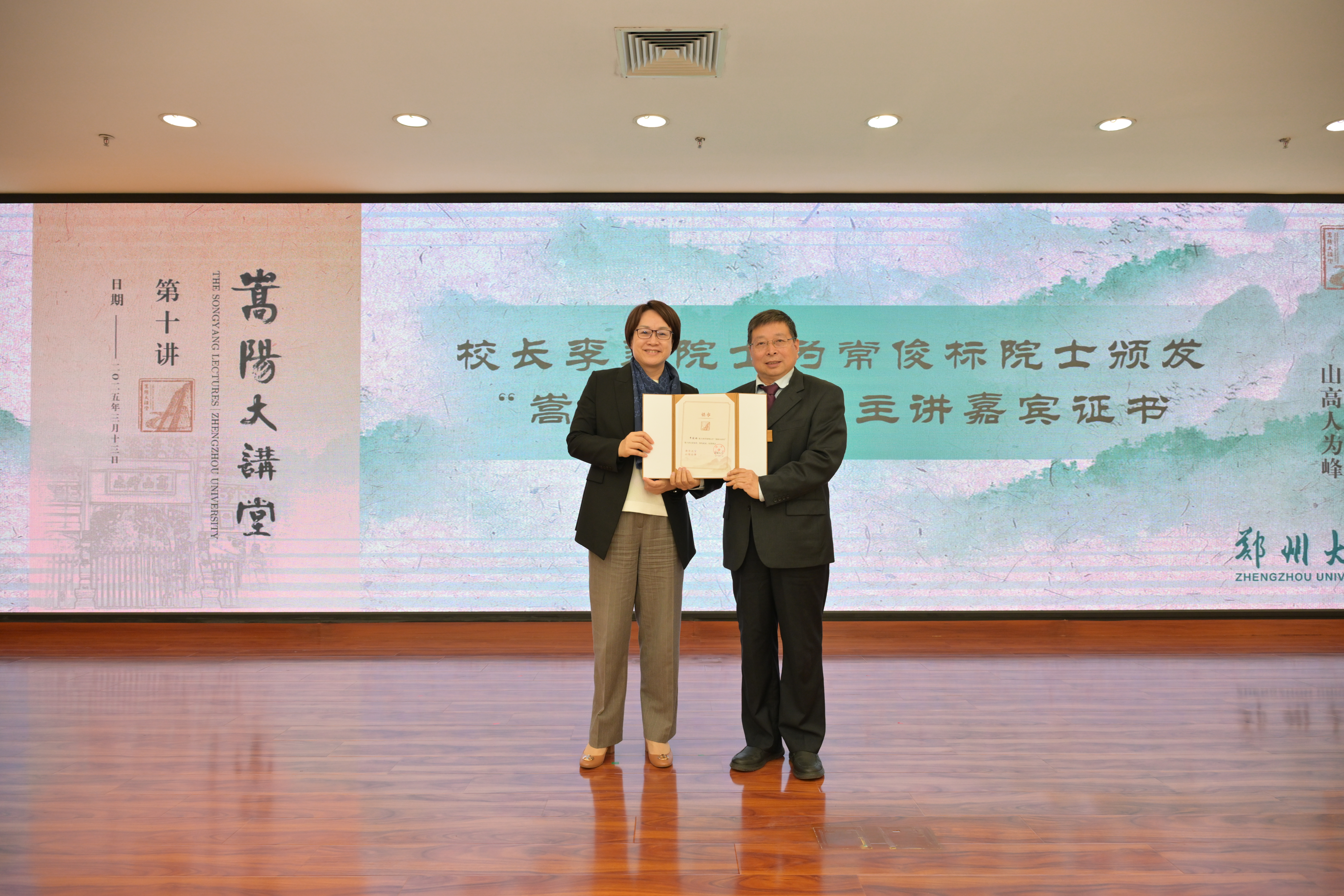 李蓬为中国科学院院士、ac米兰官网中文网站学术委员会主任常俊标颁发“嵩阳大讲堂”主讲嘉宾证书。