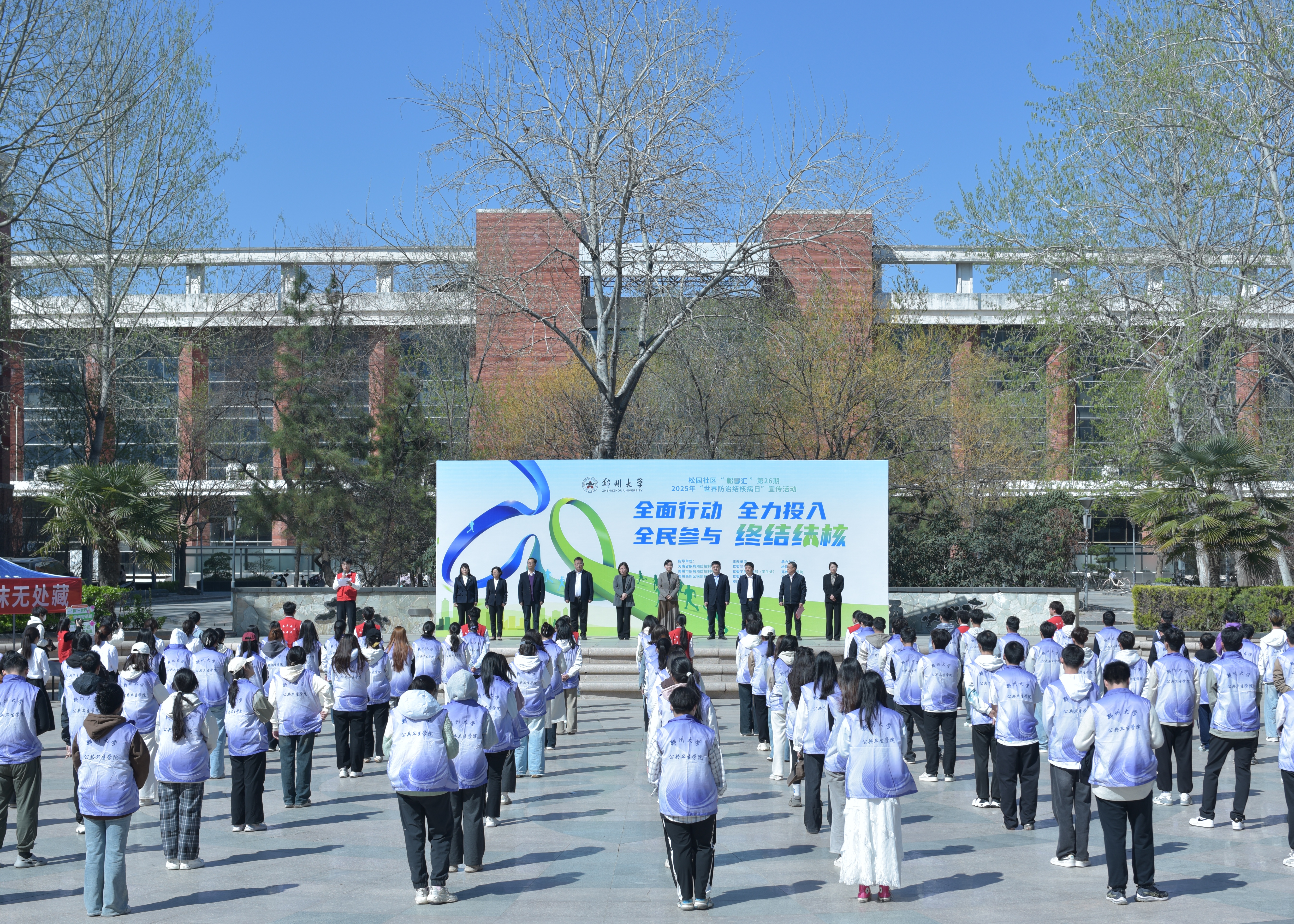 3月21日,在第30个世界防治结核病日来临之际,由校党委宣传部、党委学生工作部(学生处)、党委研究生工作部、校团委等部门主办,松园社区、校医院和公共卫生学院承办的松园社区“松享汇”第26期——2025年“世界防治结核病日”主题宣传活动在主校区举行。校党委常委、纪委书记、监察专员陈曦出席活动并致辞;校党委常委、宣传部部长孙保营和相关部门负责同志,以及校医院、公共卫生学院100余名师生参加活动。