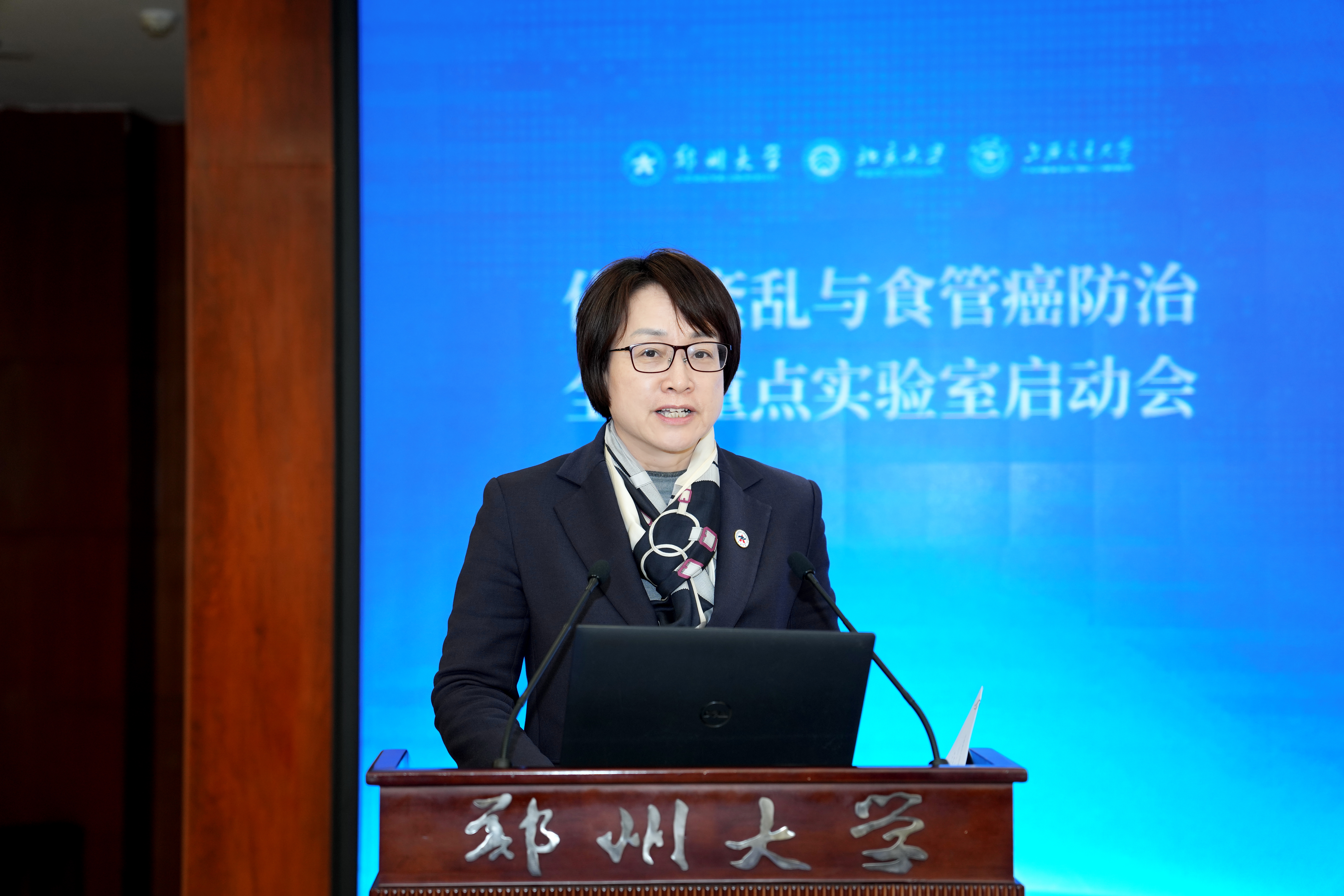 ac米兰官网中文网站党委书记李成伟致辞,向代谢紊乱与食管癌防治全国重点实验室的启动表示祝贺。他表示,60多年来,学校几代医学工作者勇担国家使命,薪火相传、接续奋斗,获批建立省部共建食管癌防治国家重点实验室,并围绕食管癌病因和预防、分子分型和早期诊断、靶向药物研究和生物治疗等重大科学问题,开展医学科研攻关,为降低食管癌的发病率和死亡率作出突出贡献。实验室的启动标志着学校在代谢紊乱与食管癌防治领域的研究迈上了新台阶,对于推动我国肿瘤防治事业发展具有重要意义。他希望实验室聚焦建设目标,开展有组织科研,打造国际领先的食管癌研究中心,推动基础理论研究与临床诊疗实现重大突破,为保障人民生命健康、推动我国医学事业发展贡献力量。