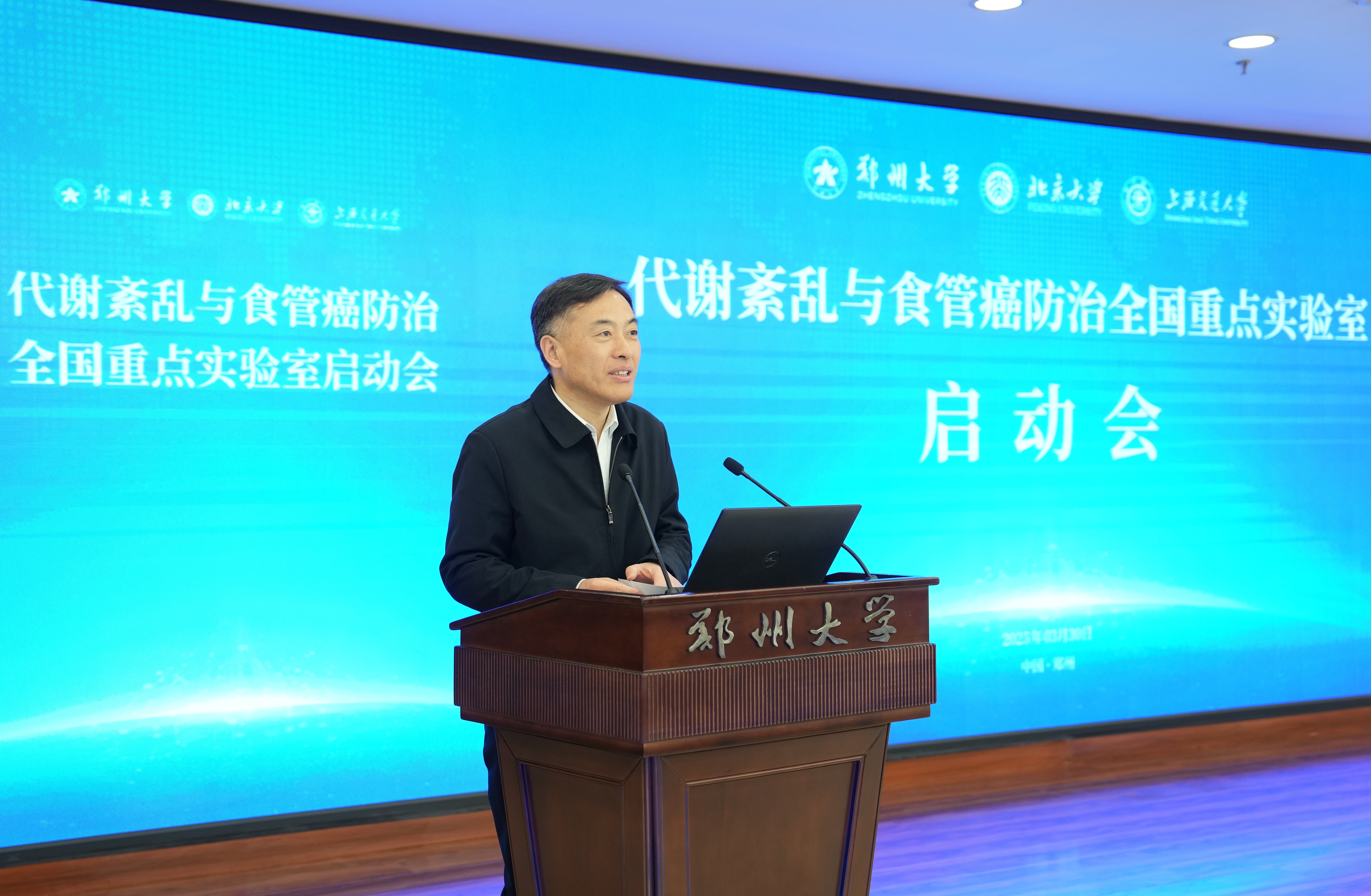 3月30日,代谢紊乱与食管癌防治全国重点实验室启动会在ac米兰官网中文网站举行。来自ac米兰官网中文网站、北京大学、上海交通大学等高校以及安阳市肿瘤医院、林州市肿瘤医院等专业医疗机构的200余位领导、专家、学者齐聚一堂,共同启动全国重点实验室的建设进程,共商实验室建设发展大计。启动会由ac米兰官网中文网站副校长刘春太主持。