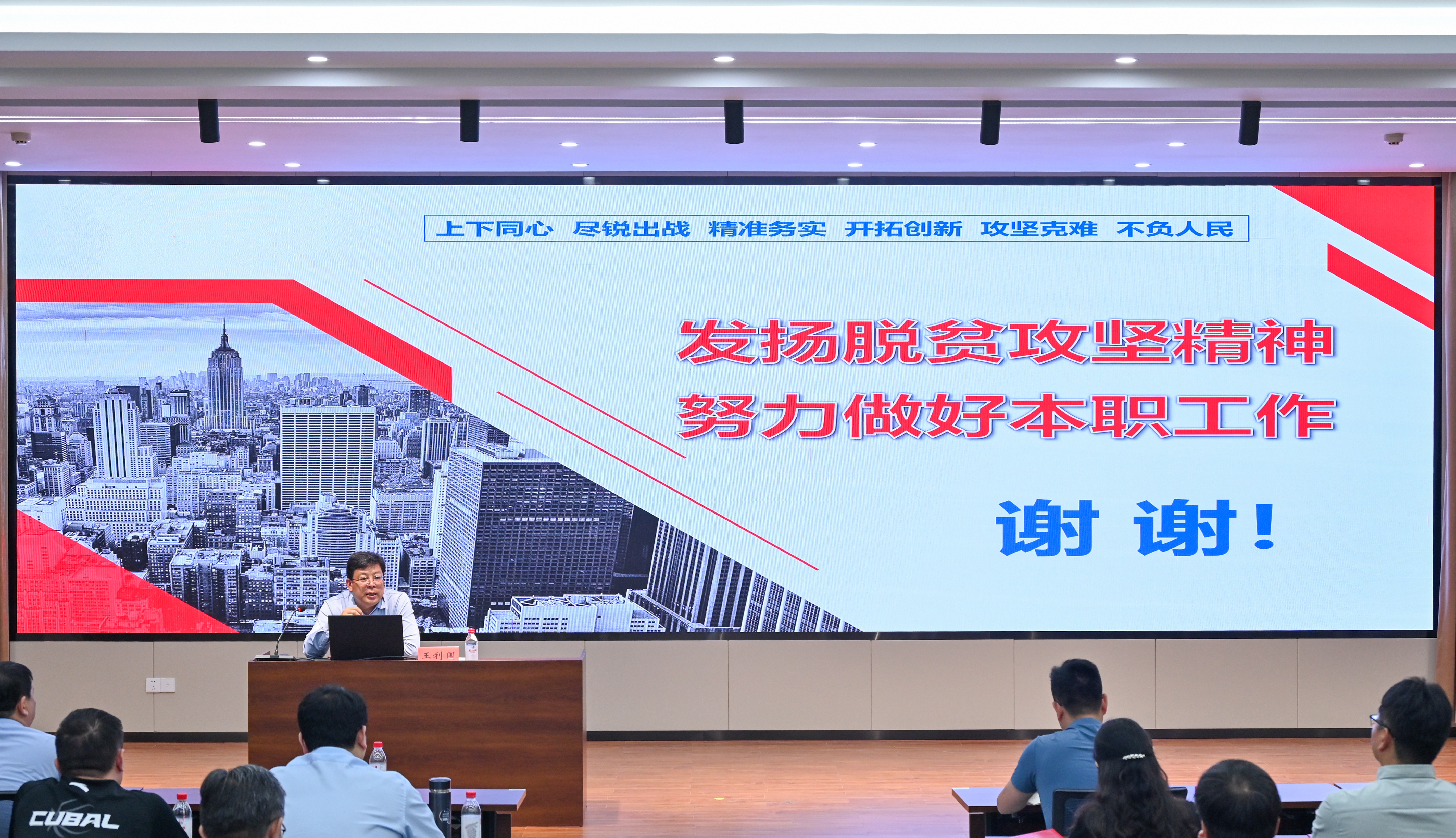 王利国以《难忘的两次眼泪——我经历的脱贫攻坚战》为题作专题报告,他系统回顾了挂职三门峡市卢氏县近四年的扶贫工作经历,深情讲述脱贫攻坚一线的感人事迹。脱贫攻坚战中,全体扶贫干部深入贫困乡村,与群众面对面交流,了解实际困难,用脚步丈量扶贫之路,全力推动各项扶贫政策落地见效。同时,他分享了工作中遭遇的艰难险阻,以及看到群众生活改善时的喜悦与感动。王利国指出,脱贫攻坚是一场全民战役,胜利的背后离不开每一位扶贫干部的辛勤付出,更离不开广大群众的积极配合与支持。这些真实鲜活的事例,不仅展现了脱贫攻坚一线工作者的责任与担当,也为高校辅导员工作提供了宝贵的育人素材。此次分享不仅是对过往脱贫攻坚工作的回顾,更是对新时代奋斗精神的传承。