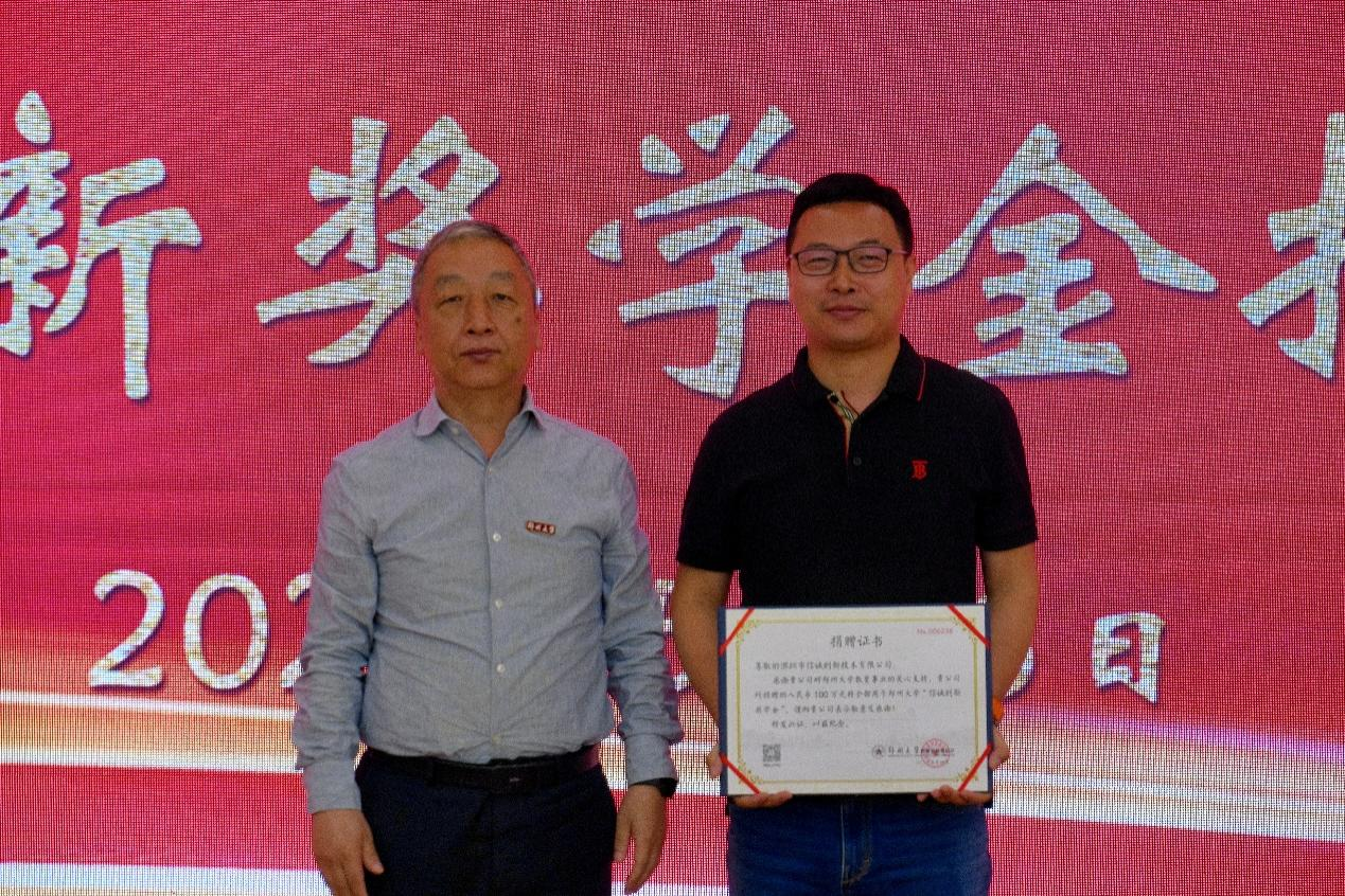 刘春太代表学校向王志颁发捐赠证书