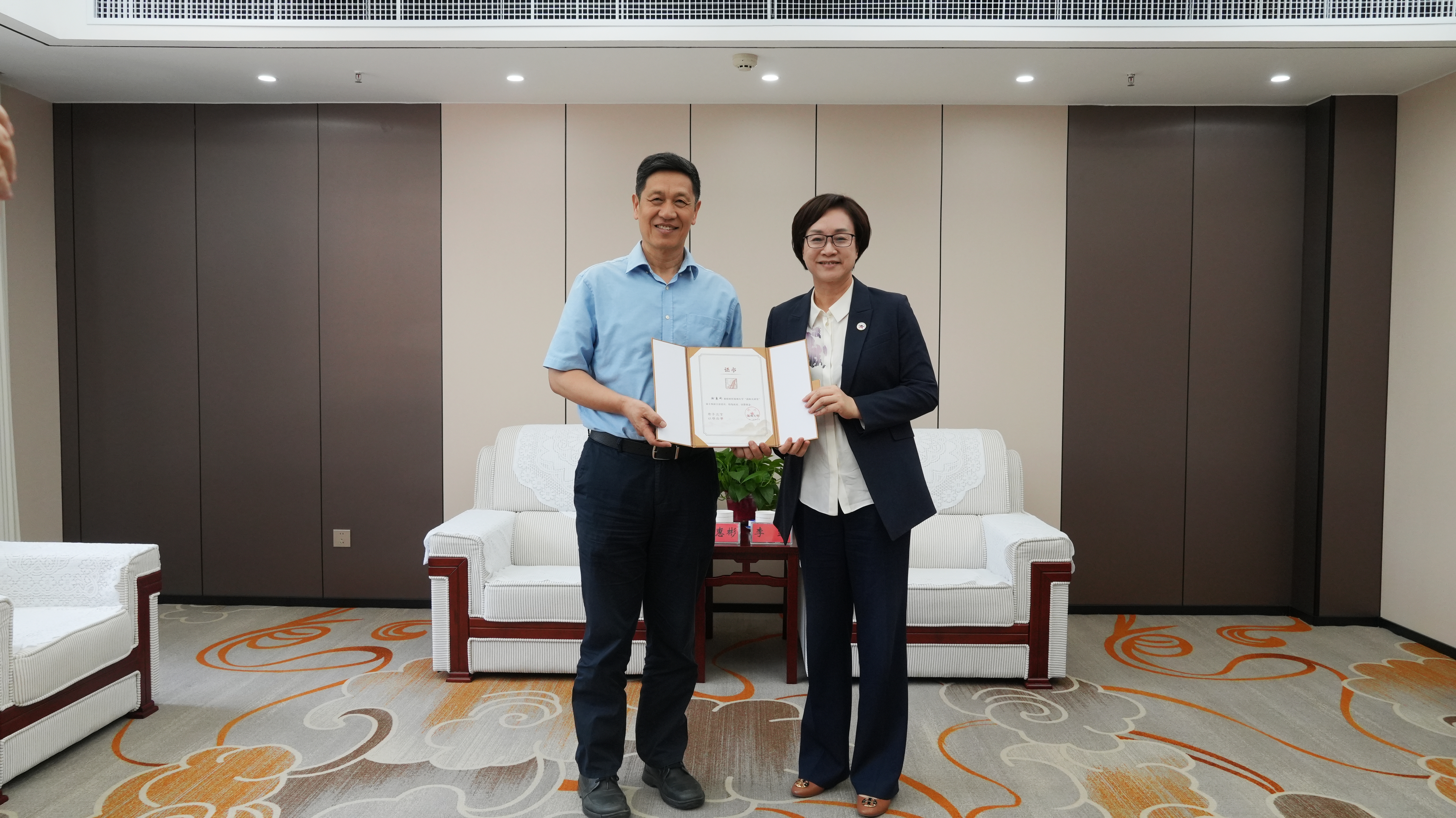 校长李蓬院士为徐惠彬颁发“嵩阳大讲堂”主讲嘉宾证书