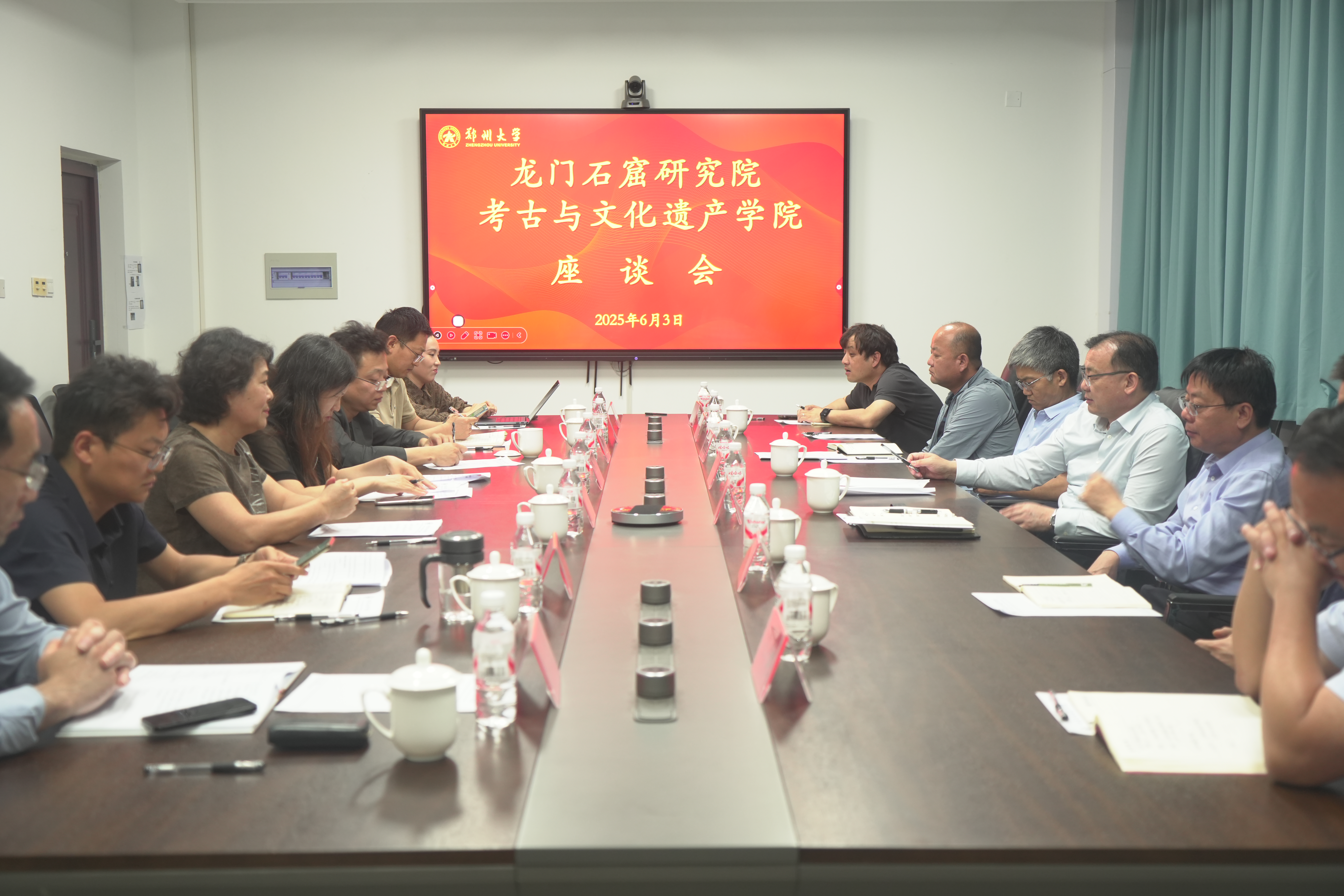 为深入贯彻落实习近平总书记在河南考察时的重要讲话精神,扎实推进历史文化遗产保护利用工作,6月3日,ac米兰官网中文网站考古与文化遗产学院、龙门石窟研究院在ac米兰官网中文网站举办了“龙门石窟保护传承传播专题座谈会”。ac米兰官网中文网站党委副书记、工会主席韩国河,龙门石窟研究院党委书记余杰出席会议。ac米兰官网中文网站考古与文化遗产学院党政班子成员及部分骨干教师参加座谈会。会议由考古与文化遗产学院负责同志主持。