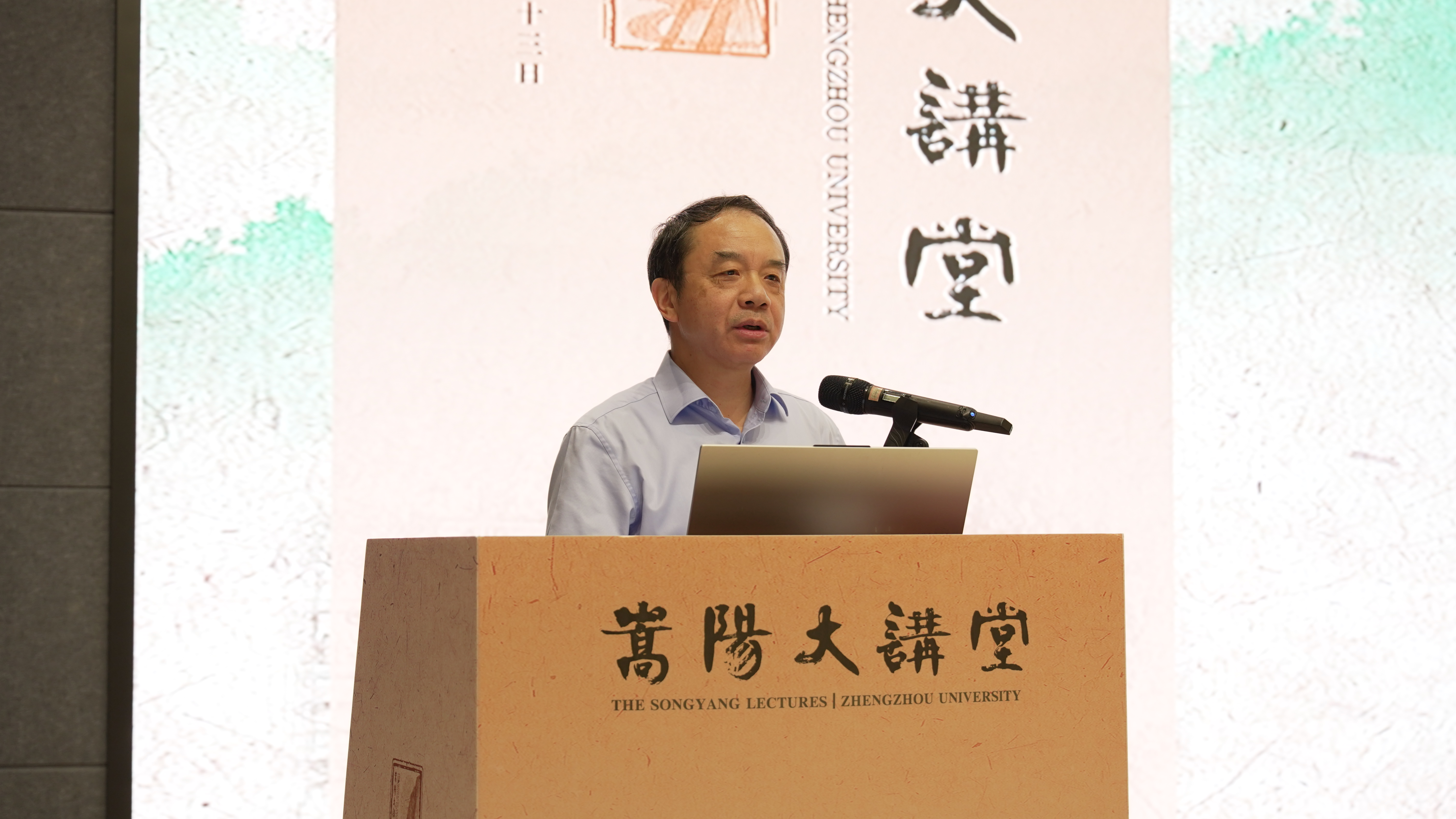 单崇新为中国科学院院士、江门中微子实验首席科学家王贻芳颁发“嵩阳大讲堂”主讲嘉宾证书。