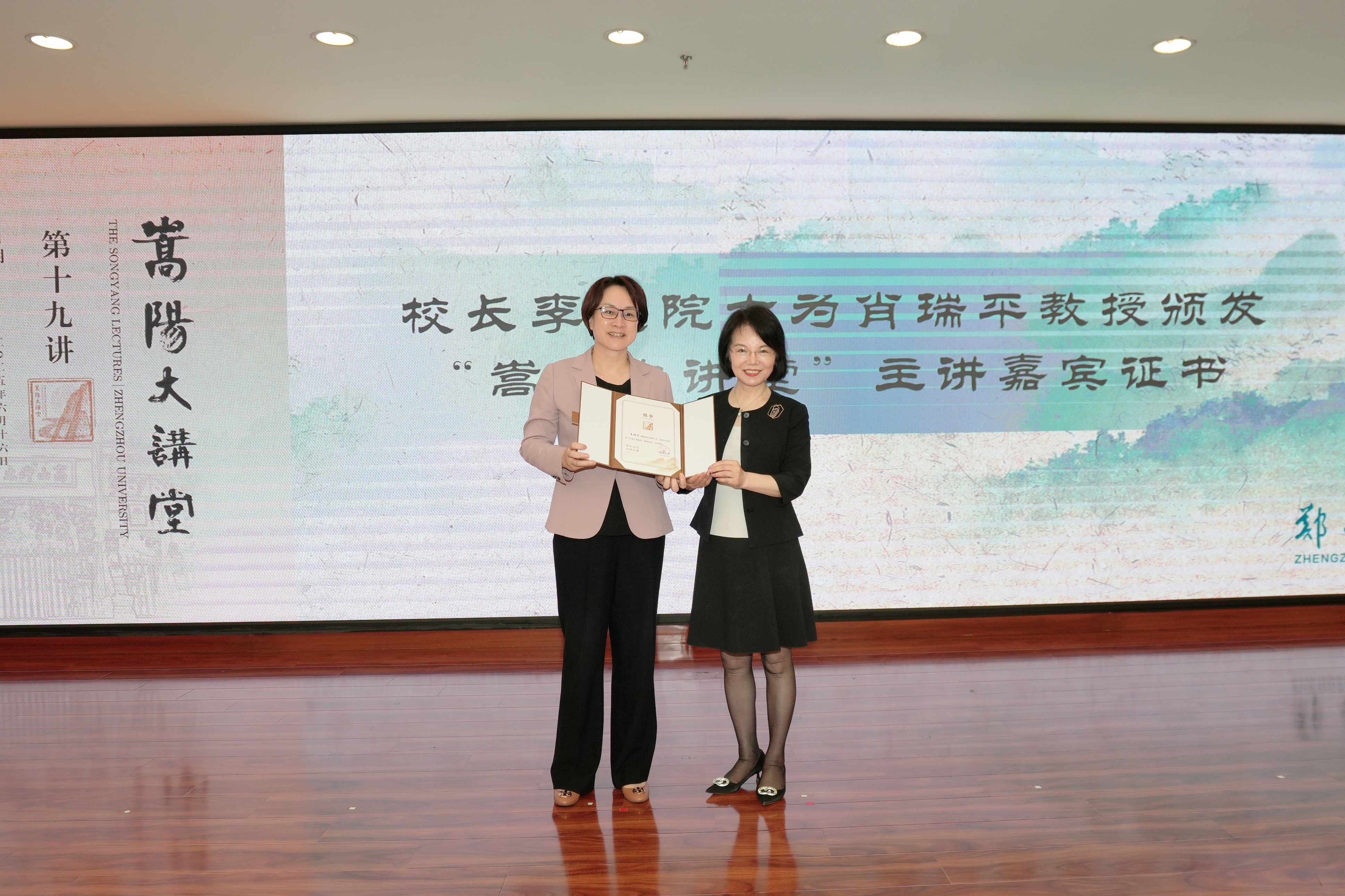 李蓬为肖瑞平颁发“嵩阳大讲堂”主讲嘉宾证书