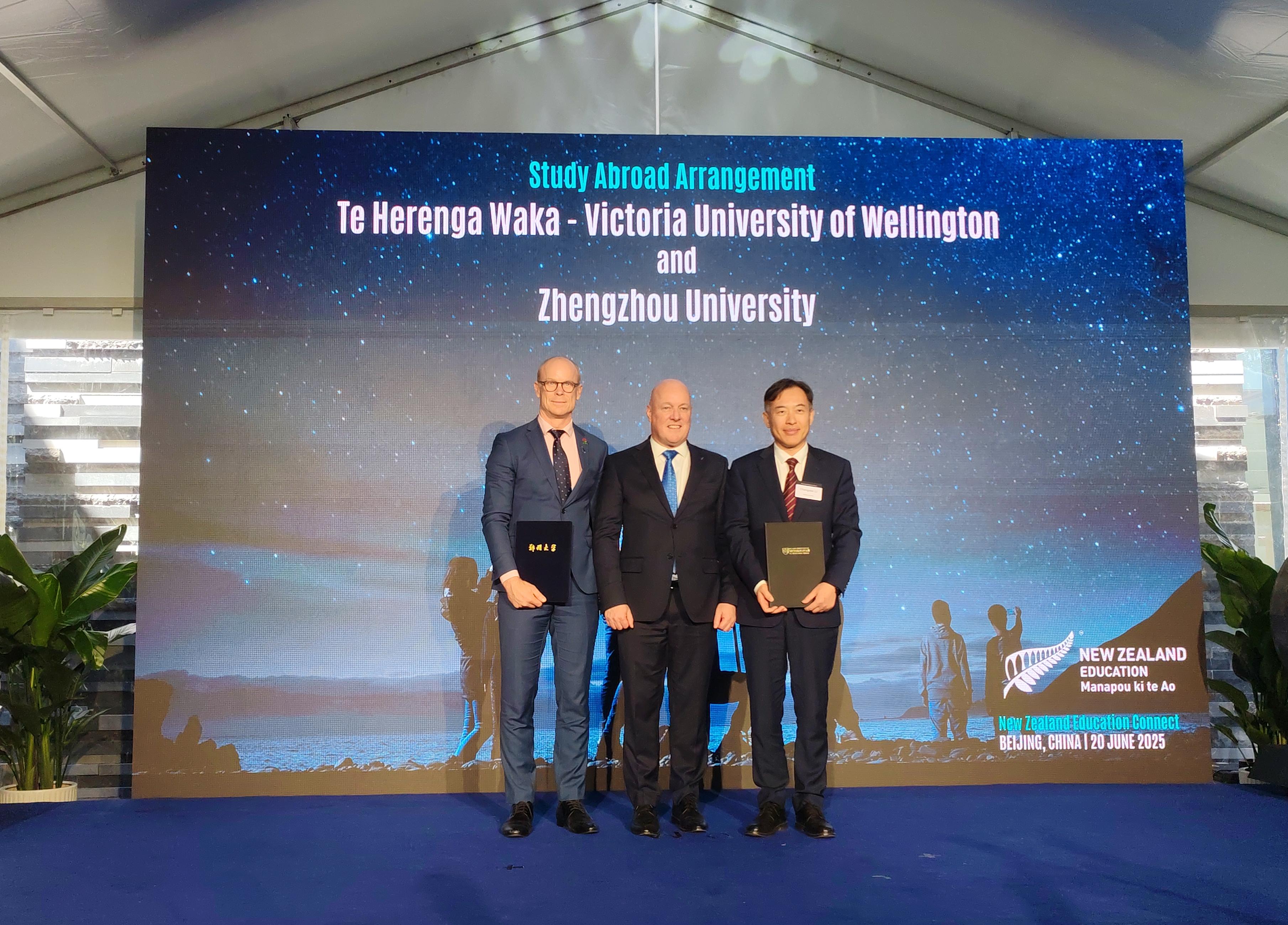 在拉克森总理见证下,李成伟代表ac米兰官网中文网站与惠灵顿维多利亚大学校长尼克•史密斯(Nic Smith)共同签署学生交流协议,标志着两校合作进入新阶段。根据协议,双方将在本科及研究生阶段开展学期交换、联合培养与科研合作,实现优质教育资源共享;未来围绕学科建设、师资培训、高层次人才培养等关键领域拓展与深化合作,共同培养具有国际视野的创新型人才。
