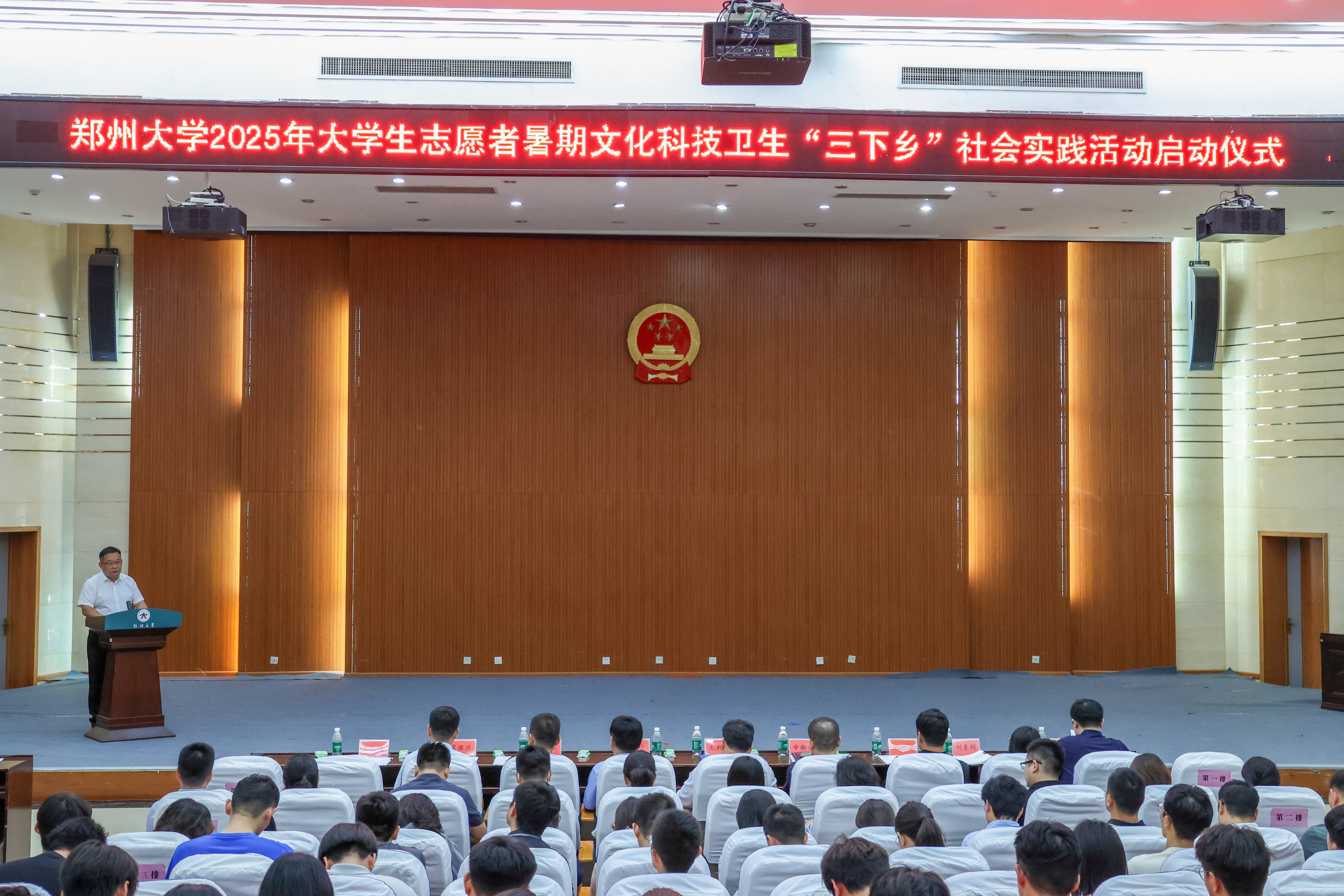 近日,ac米兰官网中文网站举行2025年大学生志愿者暑期“三下乡”社会实践活动启动仪式。校党委副书记王利国出席活动;校党委常委、宣传部部长孙保营,党委组织部、教务部、党委学生工作部、党委研究生工作部、大学生就业创业指导服务中心等部门负责同志,校团委全体工作人员,各院(系)团委负责人和研究生、本科生学生代表200余人参加活动。仪式由校团委负责同志主持。