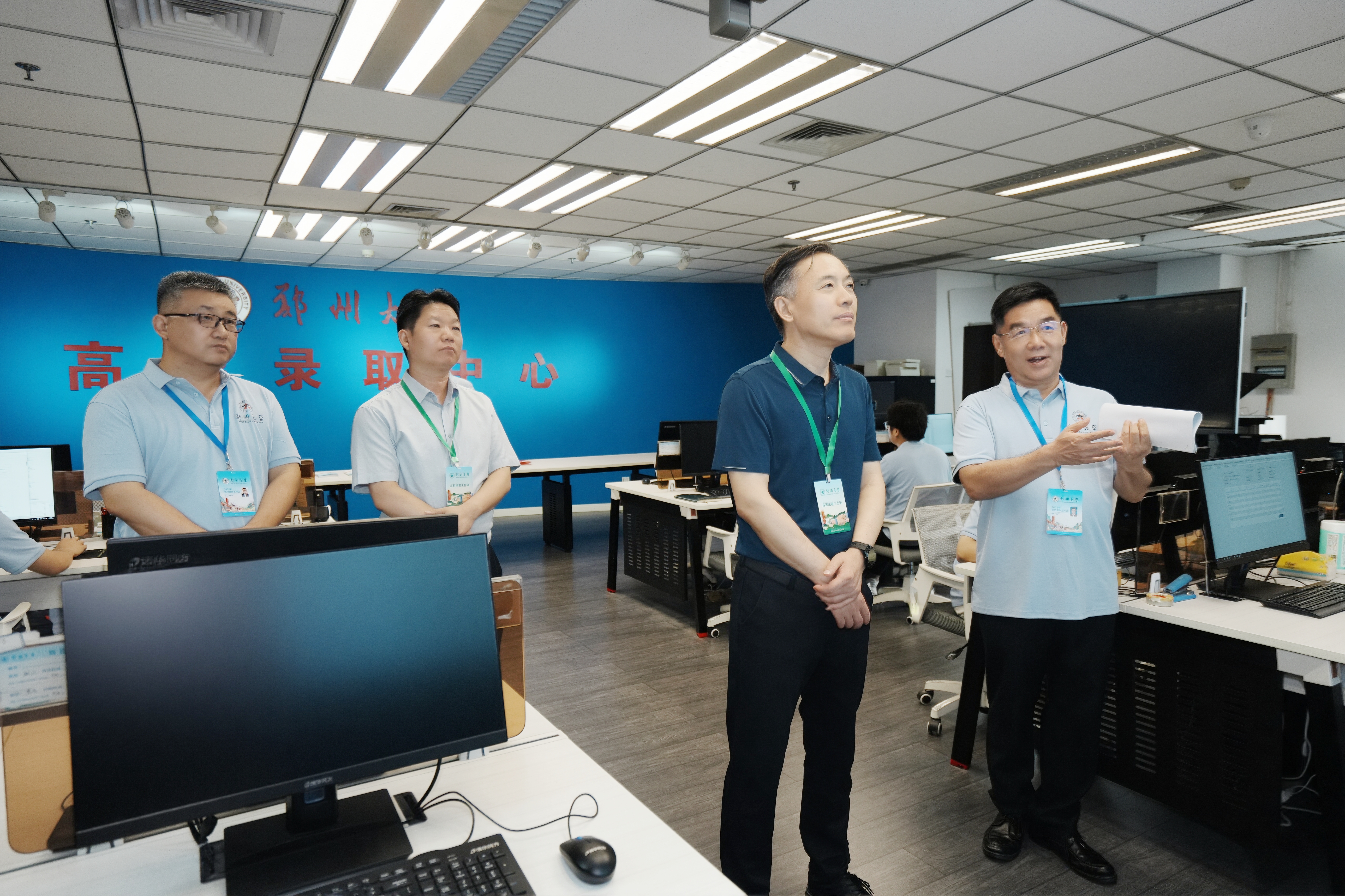 7月22日,ac米兰官网中文网站党委书记李成伟深入学校高招录取中心,调研指导2025年本科招生录取工作。党政办公室相关负责同志及本科招生办公室全体人员参加调研。