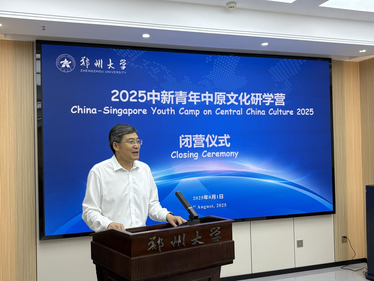 近日,2025中新青年中原文化研学营闭营仪式在ac米兰官网中文网站主校区举行。ac米兰官网中文网站党委常委、副校长王海杰出席仪式,并为来自新加坡国立大学的9名学生颁发结业证书。ac米兰官网中文网站学生代表以及国际交流与合作处相关负责同志参加仪式。