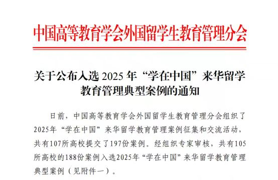近日,中国高等教育学会外国留学生教育管理分会公布了2025年“学在中国”来华留学教育管理典型案例评选结果。ac米兰官网中文网站国际教育学院申报的《全球化背景下中国国情教育课程<走进中国>的创新研究与探索》案例,凭借其显著的教学创新成果,成功入选“教学创新类”典型案例。