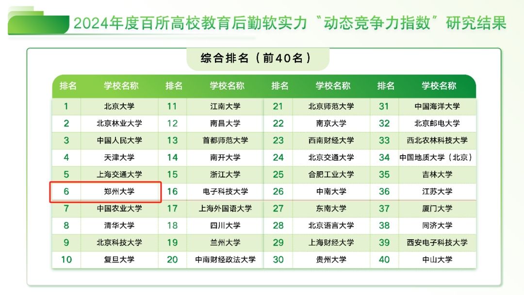 近日,由中国教育后勤协会主办的2024年度百所高校后勤服务软实力“动态竞争力指数”研究结果发布会在北京大学举行。ac米兰官网中文网站后勤服务软实力综合排名全国百所高校第六,其中效能推动力排名第三、整合传播力排名第五。ac米兰官网中文网站后勤保障中心负责同志受邀参加会议,并以《提升后勤核心能力 赋能学校教育事业高质量发展》为题,分享了我校后勤建设的实践探索与经验做法,得到与会高校代表的广泛关注与认可。