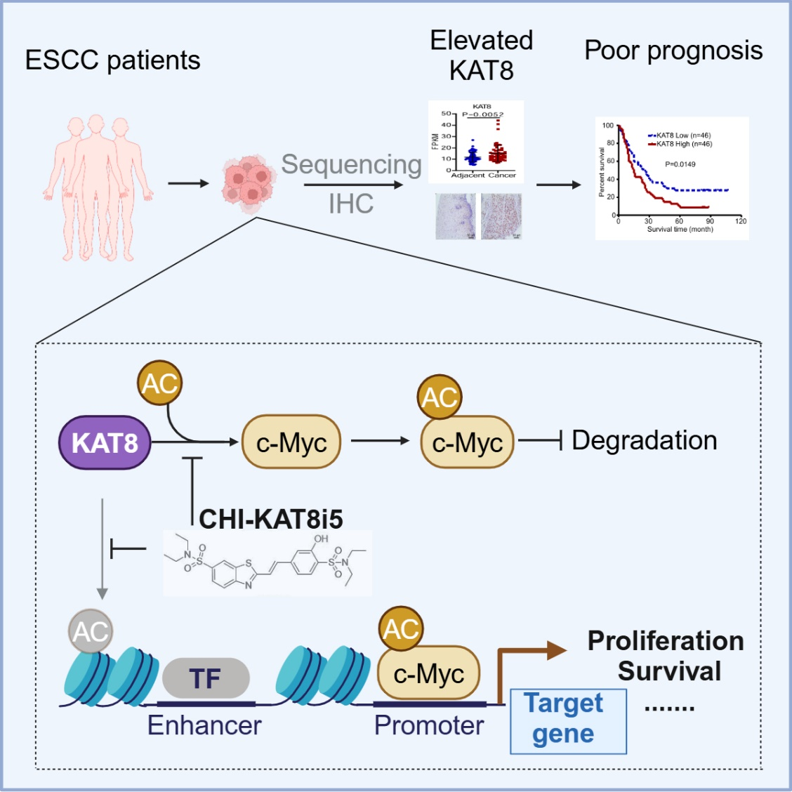 机制图:CHI-KAT8i5通过抑制KAT8介导的c-Myc稳定性来抑制食管鳞癌的发生发展