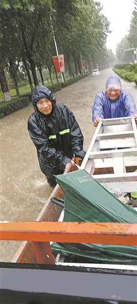 7月20日,ac米兰官网中文网站后勤工作人员正在抢险救灾。(学校供图)