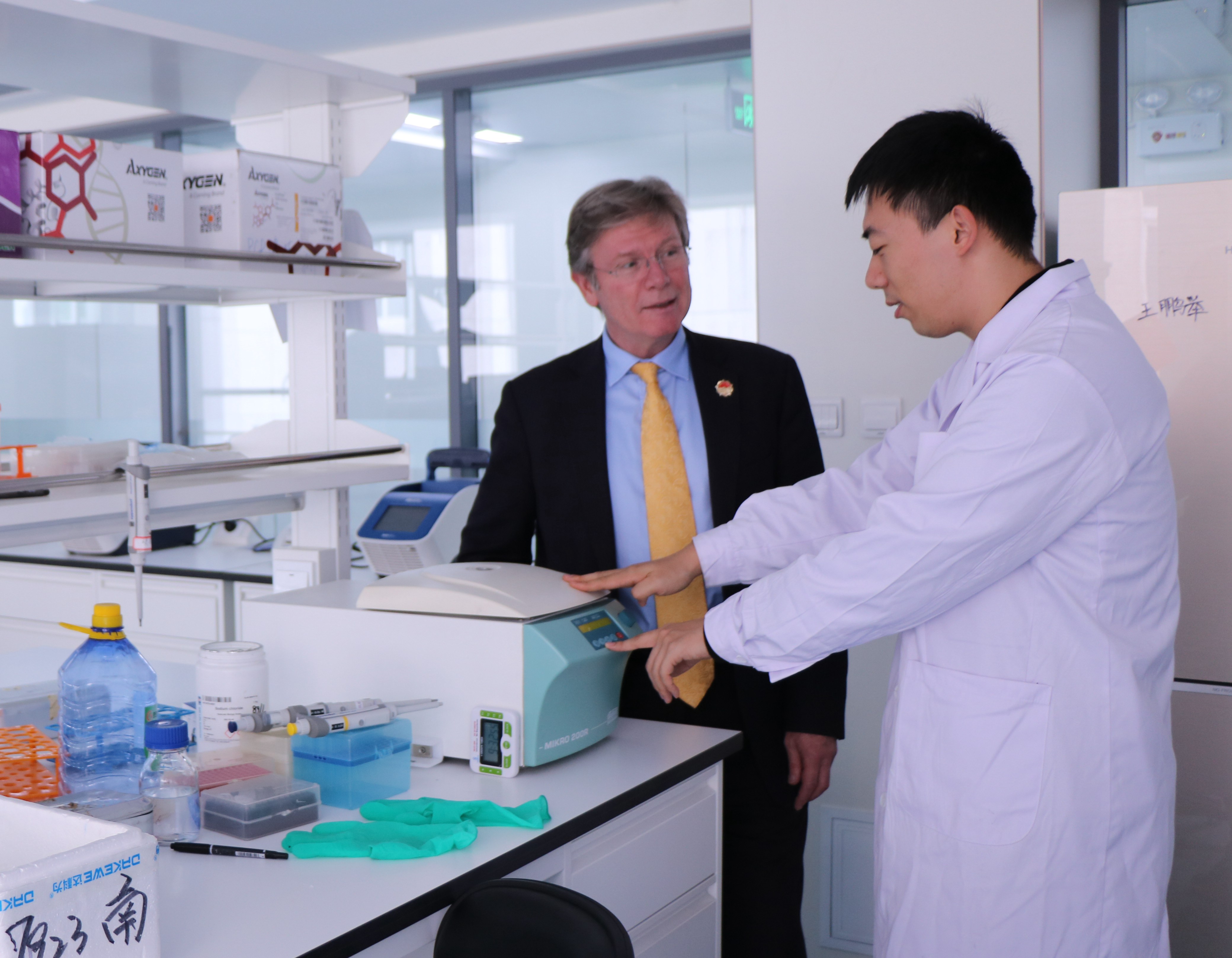 2020年新年伊始,新冠疫情的爆发犹如消散不去的阴霾,笼罩全球,也牵动着大洋彼岸尼克院长的心。尼克院长立马组织实验室开展科研攻关,并鼓励大家“你们不是一个人在战斗”,他邀请世界著名传染病和冠状病毒专家Alimuddin Zumla爵士与医学科学院展开病毒科研攻关。医学科学院青年教师程振国协同团队成员,加班加点集中精力开展科研攻关,成功研发出“新型冠状病毒假病毒评估系统”。他坦言:“尼克院长经常鼓励我们,并提出了很多关键建议,在疫苗选择优化上给与充分的支持。在研发光谱的抗病毒药中,他建议做中药的成分评估,然后往中成药和西药的方向走,更有利于成果走向国际。”