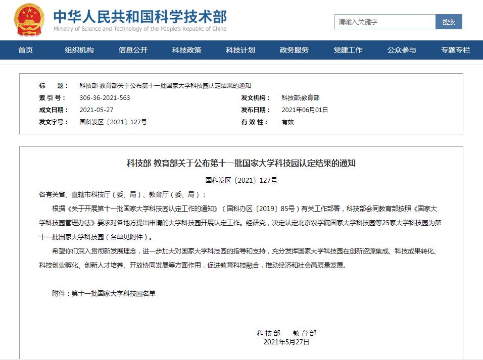 科技部、教育部联合公布《第十一批国家大学科技园认定结果的通知》