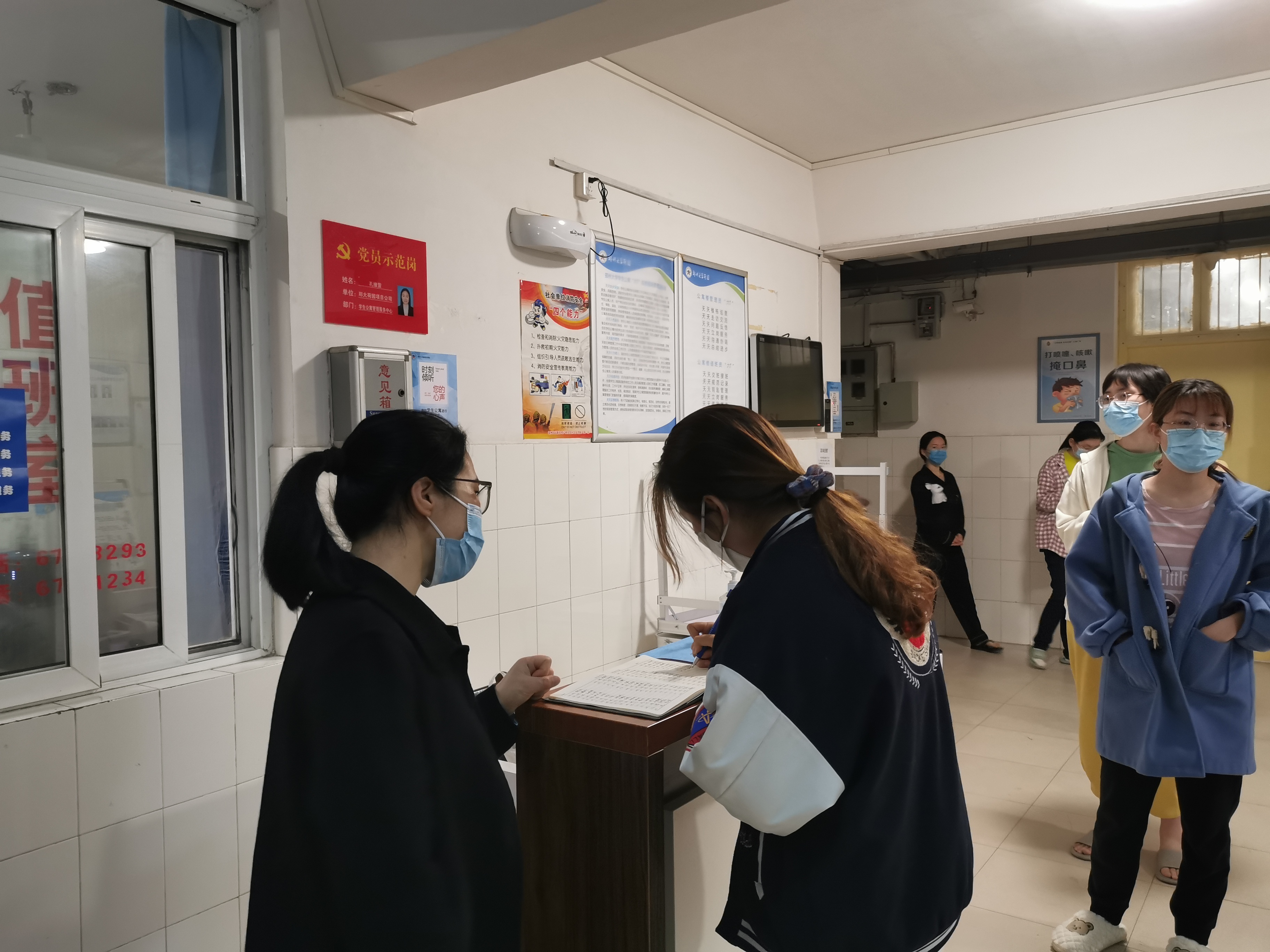 荷园10号楼是宿舍园区的“航母楼”,住宿学生达1652名。协助楼长做好统计数据、摸清情况、建立楼层组织、及时协调解决同学们的困难诉求等等成为我的新工作,入住学生跨院系、跨年级、跨学科,时间紧任务重,是一次全新的工作体验,更是一次特殊的工作考验。一次次敲开同学们的宿舍,一遍遍解释学校的防控措施,紧张有序地安排同学们错峰取餐就餐。从开始的慌乱招架到后来的游刃有余,快速的适应与应对已经是辅导员工作练出来的基本“技能包”。