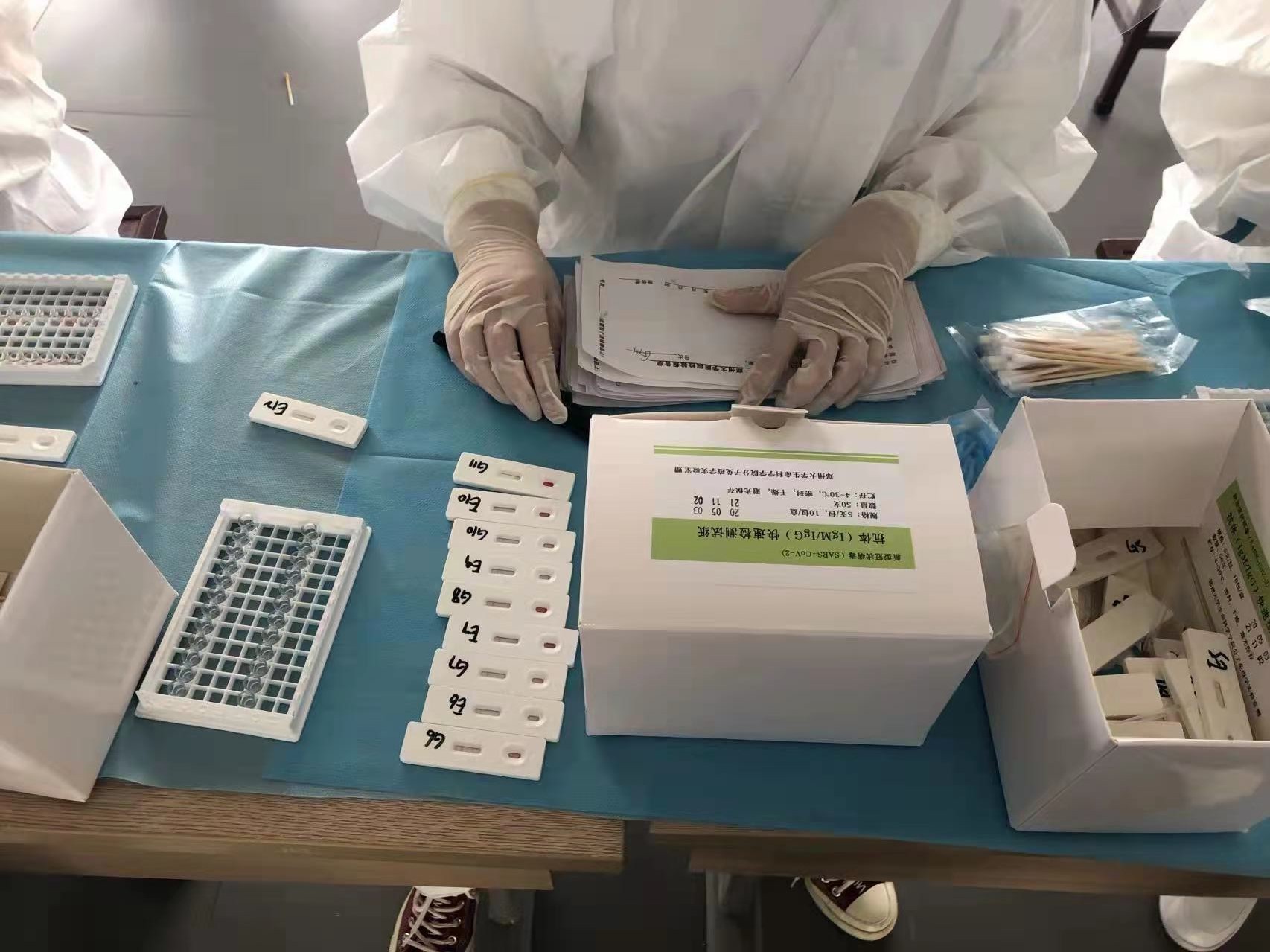 2020年2月初期,研究所研制出一款新冠快速检测试纸,能在1-3分钟完成新冠的检测,使用方便、成本低廉。ac米兰官网中文网站、河南农业大学以及国内很多院校都曾使用该产品来保证师生的顺利复学。数月后,研究所共研制出3种检测试纸:IgG、IgM、IgM/IgG抗体检测试纸和5种核酸检测方法:普通PCR核酸扩增、Real time-PCR、双引物Real time-PCR、 LAMP-CRP 核酸检测试纸、RAA-CRP核酸检测试纸。这些试纸基本上都是无偿捐赠给高校、市地政府部门、医院、上市公司等众多单位,累计已有二十余万份,在对疫情的诊断与治疗、实时监控等大规模行动中作出了重要贡献。
