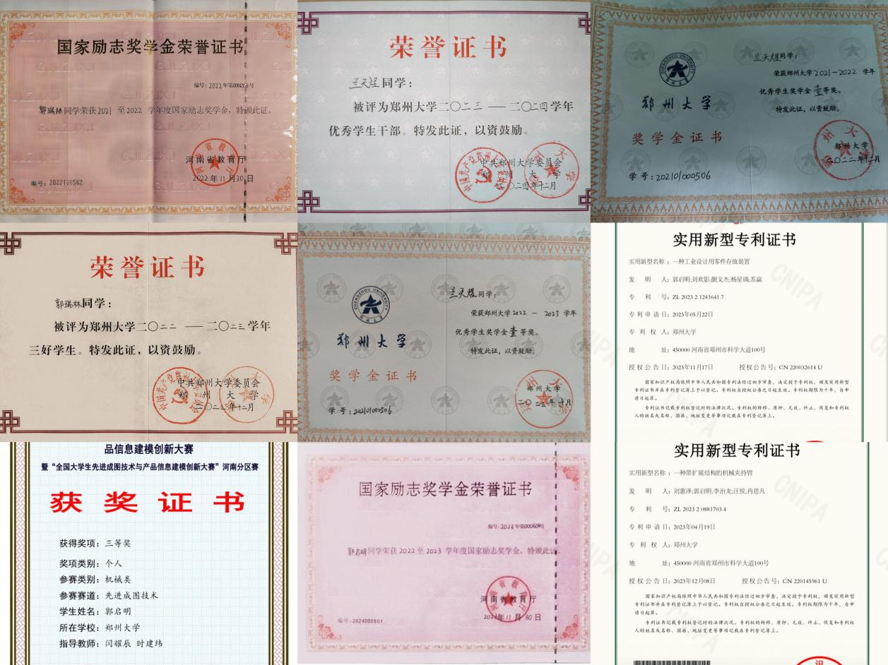 在校期间,六人获得奖项共计二十几项,多次获得不同等级的校级奖学金以及“三好学生”“优秀学生干部”“优秀团员”“优秀青年志愿者”等校级荣誉称号,累计研发实用新型专利达七项,参与多项校外实践项目。