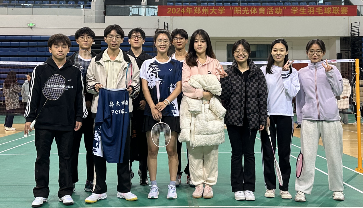 李雯丽(第一排右二)和同院同学参加羽毛球联赛