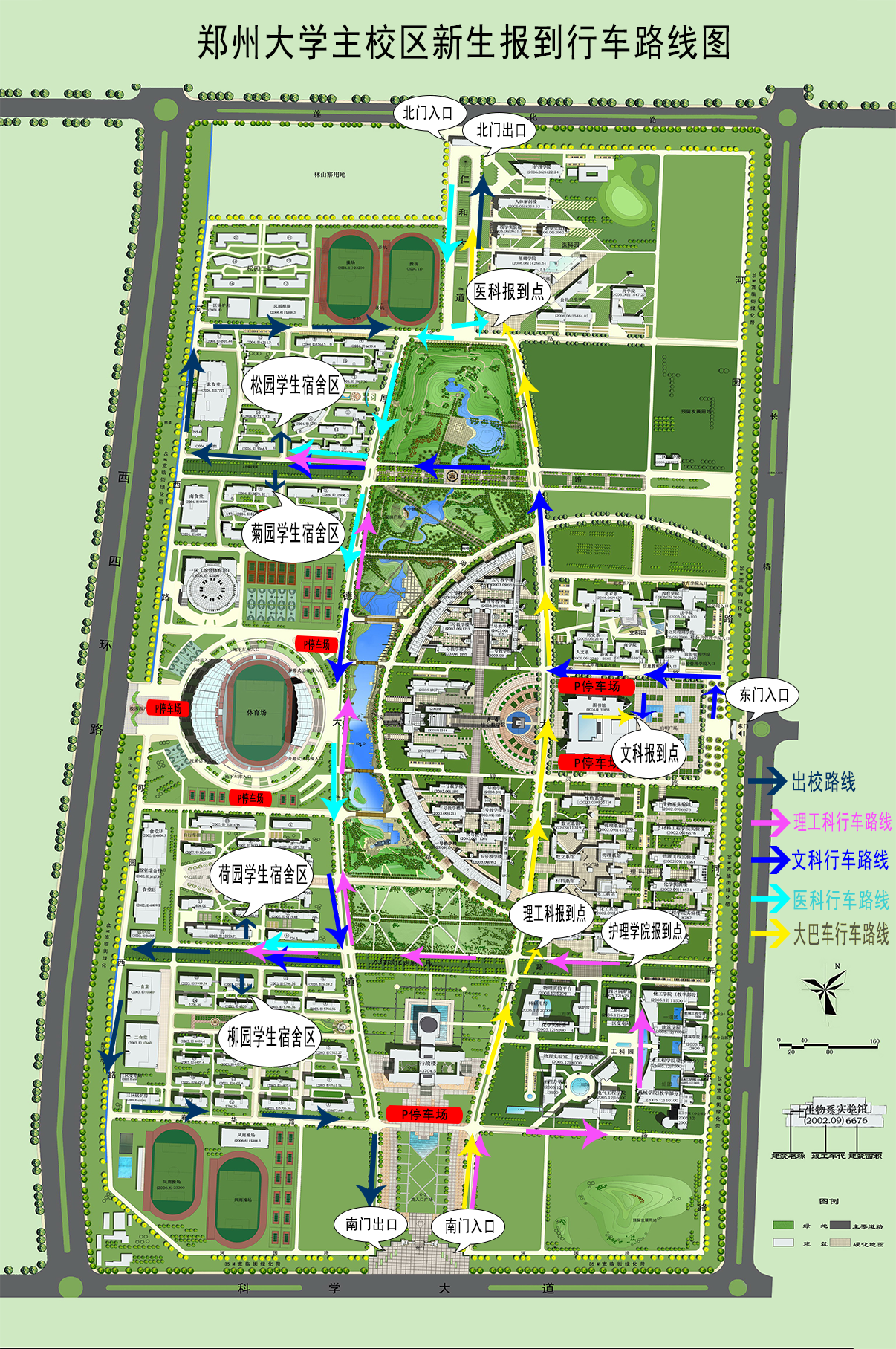 机动车行车路线:(1)理工科院系由科学大道南门入校→走天健大道东幅向北→沿春华路向东进工科园停车→到泊月路东段报到点办理报到手续→沿泊月路向西→厚德大道西侧学生宿舍区→办理入住手续