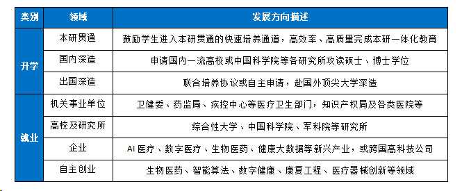 2.继续深造:进入国内外顶尖高校和科研院所,攻读医学工程、人工智能、神经科学等方向硕博学位。